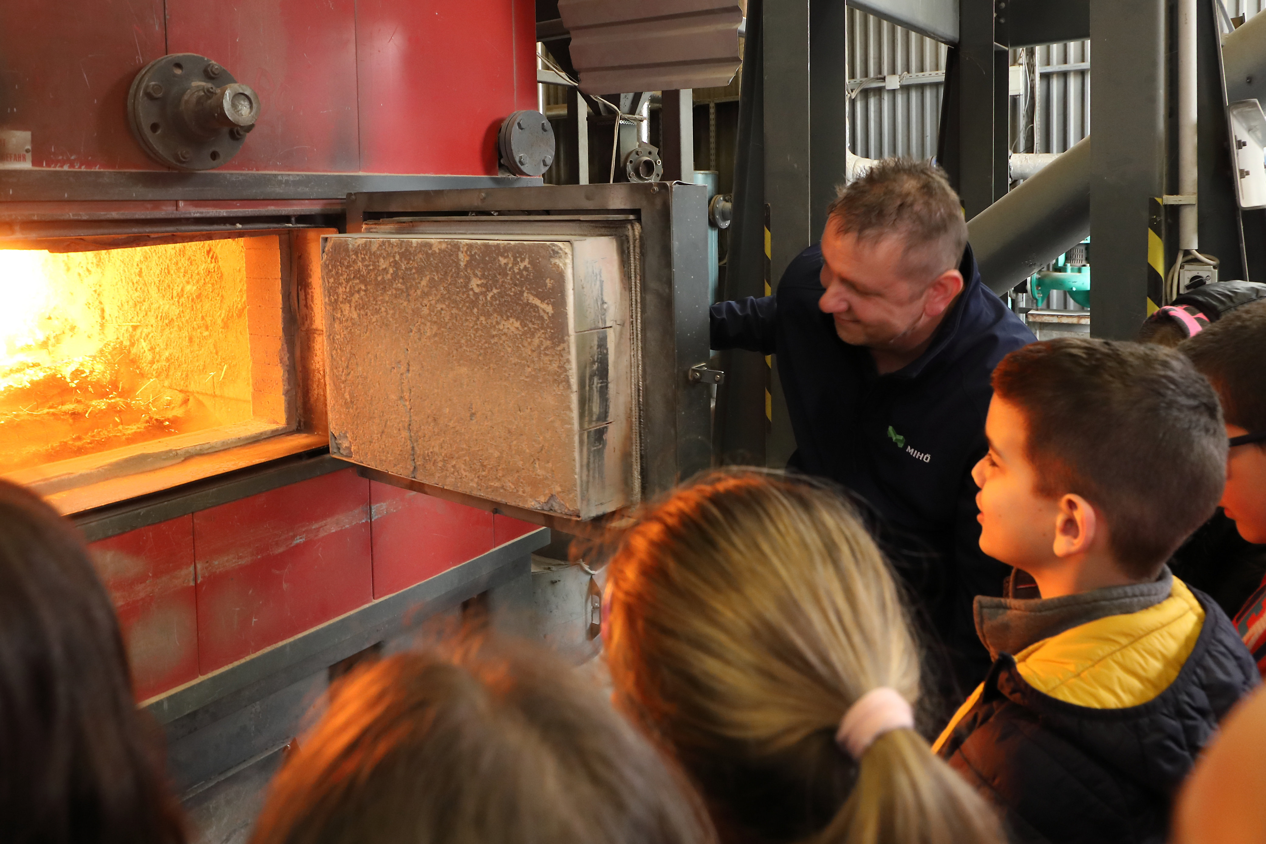 A MIHŐ évek óta igyekszik szinte minden korosztálynak betekintést nyújtani a miskolci távhőszolgáltatás működésébe és a megújuló energiaforrások használatába. A diákoknak az tetszett a legjobban, amikor kinyílt a kazán ajtaja és meglátták a lobogó tüzet